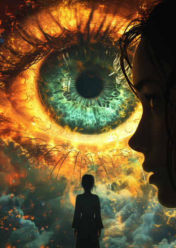 A kaleidoscopic mangas anime Light and mood image with Isadora Duncan, Power Mimicry, mangas style, and a Stop-motion view --v 6.0 --c 15 --ar 5:7 --s 750