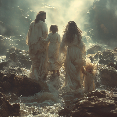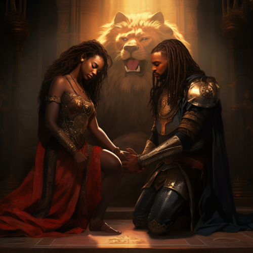 a black girl raising from the dead, beacoming a beautiful live woman, she bows down on her knees infront of her glorious king