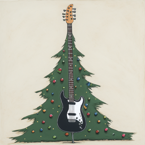 cartoon of a christmas tree playing a electric guitar with sunglasses in the style of gary bunt --v 5.0