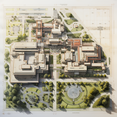 poster of architecture plan of emergency department of a general hospital the size of it is 50000mm x 34000 mm --s 250