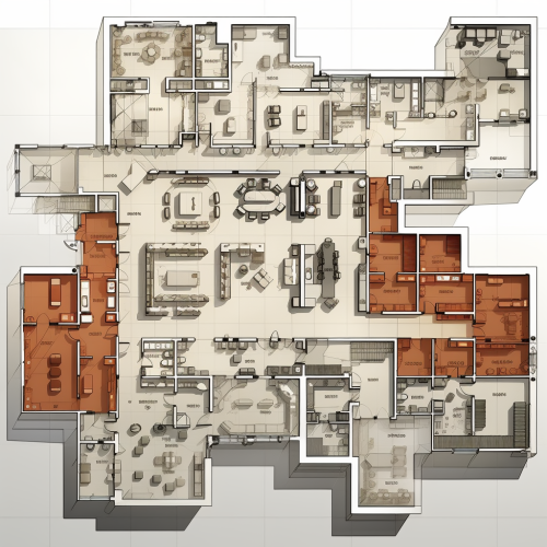 architecture plan showing the rooms of a general hospital on emergency department the size of emergency department is 50000mm x 34000 mm --s 250