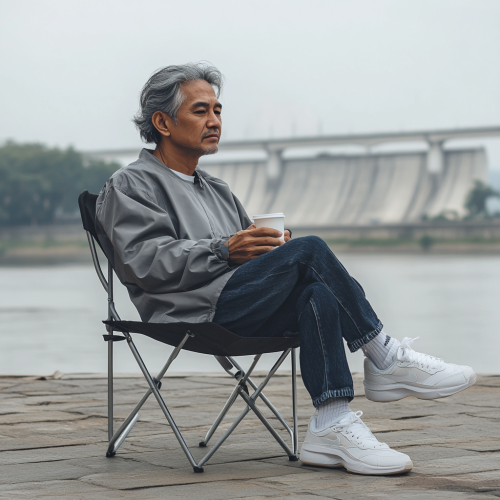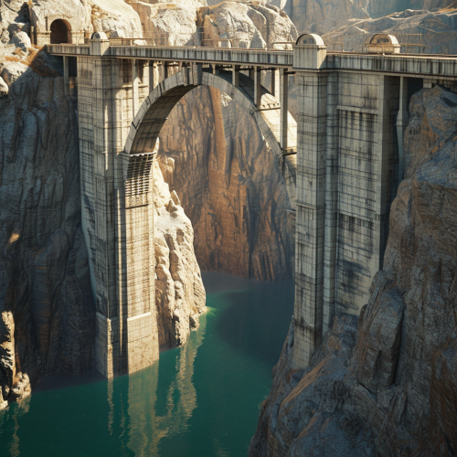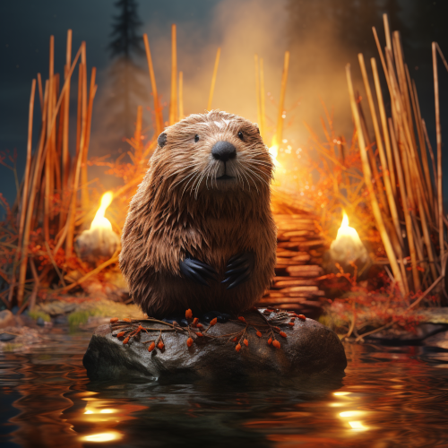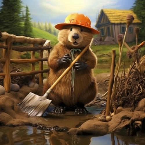 Illustration of a giant beaver dam on an ocean with a lookout bridge