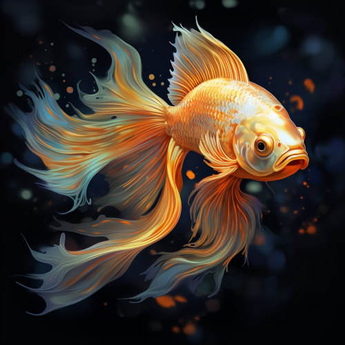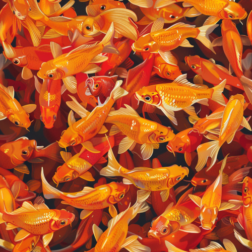 a multitude of majestic goldfishes in water, from above, vector illustration --v 6.0