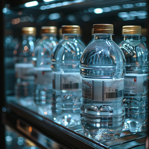glass bottles of water inside the fridge --s 750 --v 6.0