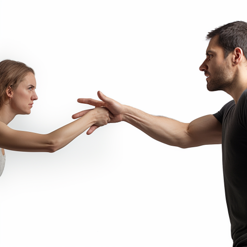 picture a side view a woman’s hand punching and punching away a man’s hand. She is defending herself. She doesn’t want the man near her. Just show a zoom of the hands and arms. white background