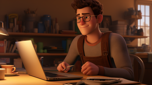 college student motivated and confident in the style of pixar --ar 16:9