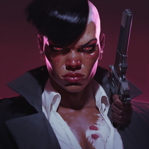 gangster mbison. Female. Portrait. --style 3fsE3uZyG4D --v 5.2