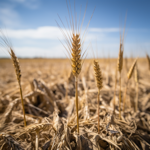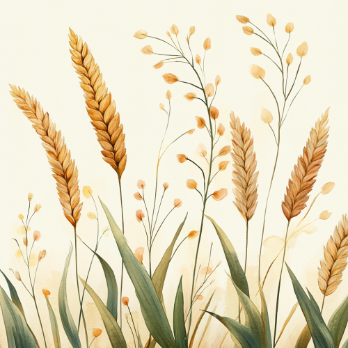A detailed, natural-style label design featuring golden wheat stalks swaying gently in the wind, in a warm, earthy color palette of yellows, browns, and greens. The label should have a classic and clean look, with clear and elegant typography for product information. Background in soft beige or light cream, adding a warm feel to the overall design. Minimalist and professional, with subtle highlights on the wheat to give it a natural glow. --s 250