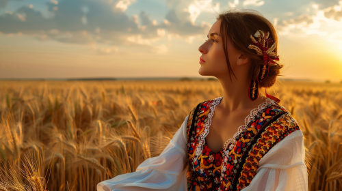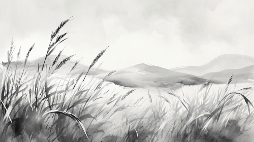 The wheat fields are golden and filled with the joy of harvest,Chinese ink painting style,black and white --ar 16:9 --v 6.0
