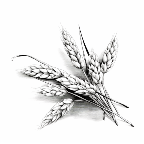 Illustration of Japanese-style ears of rice, used as an illustration, ink painting, black and white, small bunch, Japanese Koshihikari instead of wheat,