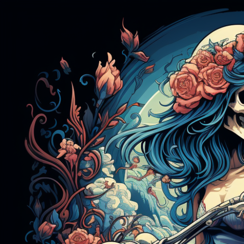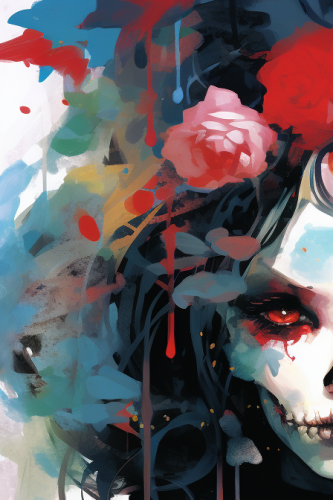full body pose, day of the dead, skull faced, flirty smile, gothic nymph, fallen angell, art by greg tocchini and kaethe butcher and atey ghailan and yoji shinkawa and ashley wood and pino daeni and takehiko inoue, glitch art, vibrant colours --ar 2:3 --s 75