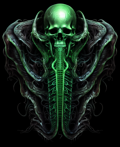 human skelleton torso and ribs, gothic, cthulu tentacles. green ribs, weirdcore, black background, --ar 9:11