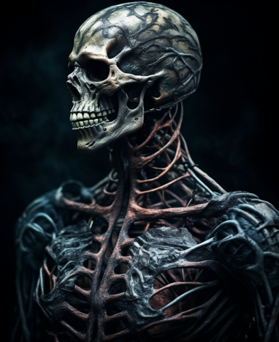 human zombie skelleton torso and ribs, gothic, weirdcore, black background, --ar 9:11