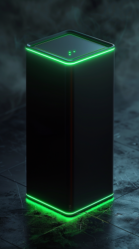 minimalistic black charging box, green lights details , Mac style, hyper realistic,white background --ar 9:16 --v 6.0 --s 750
