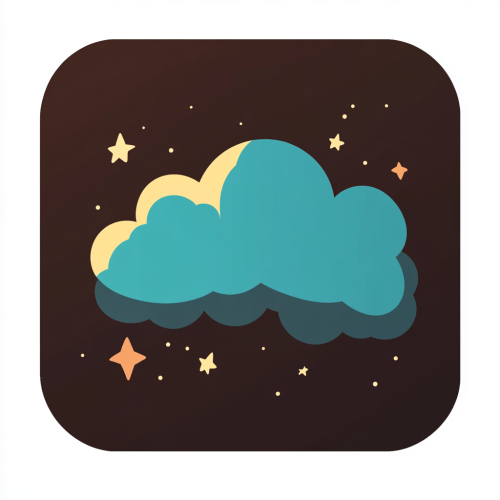 A simple, minimalist cartoon-style icon of the night sky with stars and clouds. The cloud is blue, while the background color has a subtle gradient from dark brown to black. This design could represent calmness or sleep in an abstract way. It would be suitable for coloring pages, children's books, or nursery art style. No text should appear on the image.