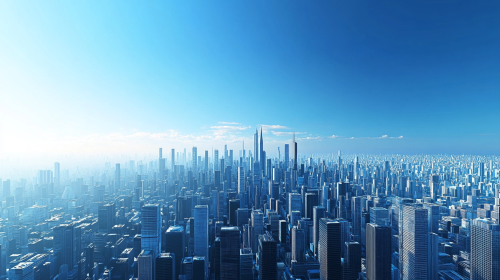 Panoramic Smart City 3d Rendering, 3D tower architecture, wide photos of the futuristic Modern Electric city, present and minimalist, clear sky on top of city, perfect Modern Electric, perfect black and blue futuristic architectural high-rise buildings. blue color, --ar 16:9 --v 6.1