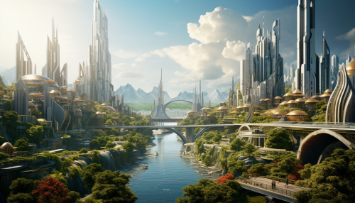 Futuristic Syth Punk Heroes in Green Nature Smart City