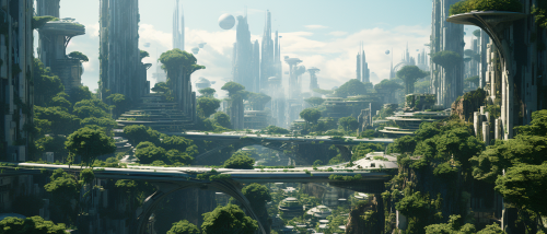 an screen grab of a future solar punk city from an anime high detail --ar 21:9
