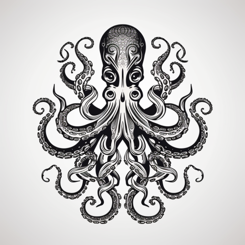 octopus black and white simple line art whimsical style on plain background