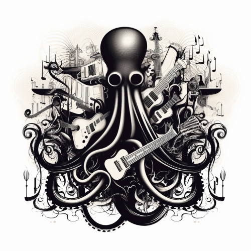 Black and white octopus jazz illustration