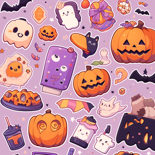 halloween spooky themed assorted stickers, orange and purple, kawaii --niji