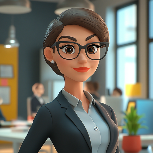 A HD 3D cartoonish design for A professional setting with people/team confidently presenting their achievements and skills. The background should be a sleek office environment with a focus on the individual. Use the color #150808 for the person's attire and subtle accents in the office decor. Ensure the scene is engaging and highlights the uniqueness of the individual without any text in the background.