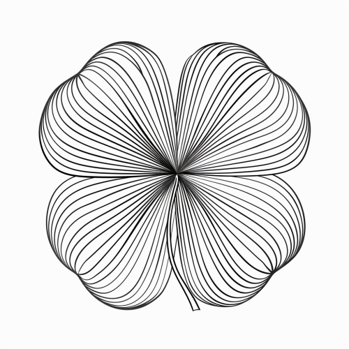 four-leaf clover line art drawing + modern style + vector line + each clover leaf different and heart-shaped