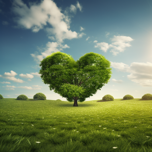 Image of a lawn with a heart shaped tree in the center, 4k ultra hd