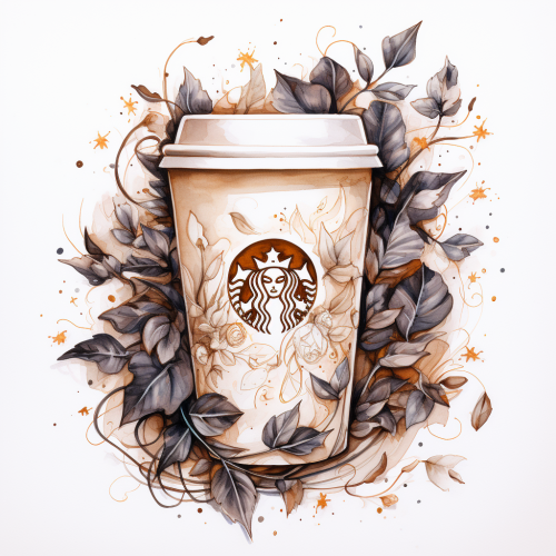 a line sketch depicting the image of love, starbuck lattes, & leaves --s 250
