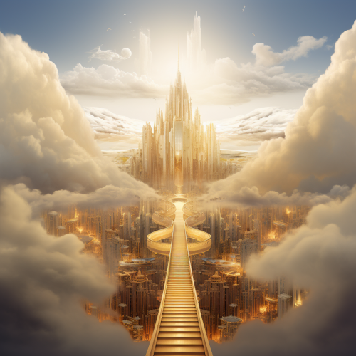 dimension of A Part heaven in clouds with golden building in the sky pathways and bronze roads ways