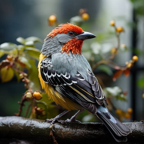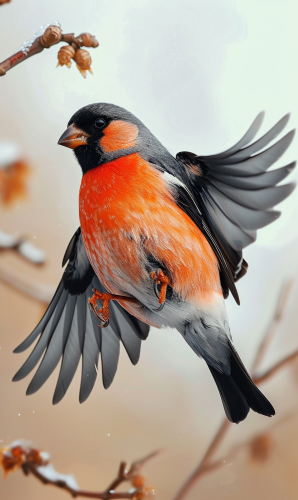 bullfinch photorealistic one wing spread out looking backwards --ar 3:5 --v 6.0