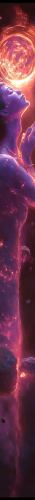 A glowing purple humanoid figure stands confidently in the center of the scene. One half of the background is depicted in vibrant, mystical light, symbolizing spiritual awareness and hidden dimensions. This side is filled with cosmic symbols, ethereal energy waves, and bright, swirling colors that represent the unseen world. The other half of the background shows a normal, everyday environment in muted colors, representing the ordinary reality that most people perceive. The figure’s eyes glow brightly with an ethereal light, illustrating the ability to perceive beyond the ordinary. The contrast between the two sides of the scene emphasizes the quote, 'It’s not that I can’t see what they see. It’s that I see what they can’t,' showing a world full of hidden possibilities and deeper understanding. --ar 9:16 --s 750