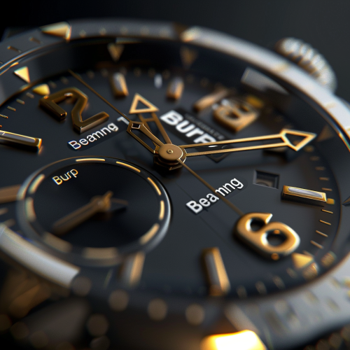 a cinematic 3d icon to use as a brand logo, text "BeamNG Burp" is positioned on the side of the logo, high detail, 8k, 4k render, Face of a designer watch --v 6.0