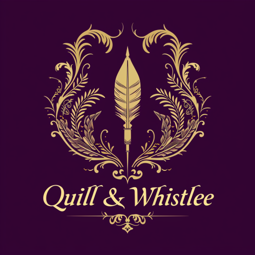 A Luxury and very expensive style logo using an extremely ornate quill and whistle from 1520 for a high-end design brand called "Quill & Whistle" exuding luxury and royalty through its design elements. Colors: Opulent golds and deep purples. Font: Ornate and regal — v 6.0 --v 6.0 --s 50 --style raw