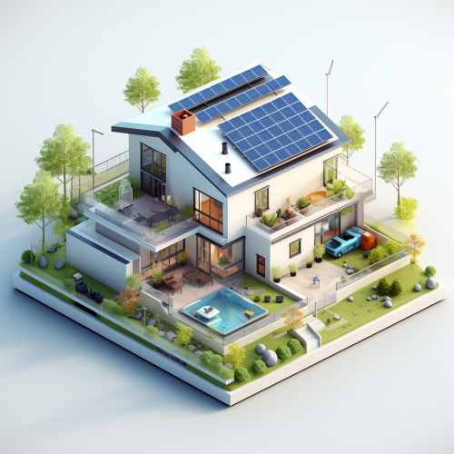 isometric clean house illustration with energy flow, very simple, white background, cubic --s 250