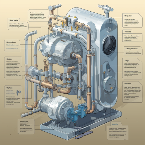 a digramatic drawing of a a domestic hot water system with a flow-through design to explain its functionality label the different parts with their names