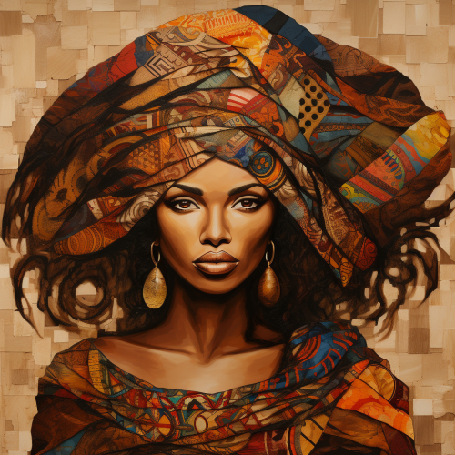 "Embracing Diversity" portrays a brown African woman standing amidst a tapestry of diverse cultures and traditions. Her expressive eyes convey a message of unity and acceptance. The artwork skillfully incorporates elements from various African cultures, symbolizing the continent's rich diversity. This piece serves as a powerful reminder of the importance of embracing differences and celebrating the collective heritage that unites humanity. It's a thought-provoking artwork that resonates with viewers on a deep, emotional level.
