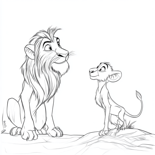 coloring page for kids, lion king theme, the famous scene of rafiki introducing simba, single object, minimalist, thick lines, low detail, no shading, on white background --v 6.1 --style raw