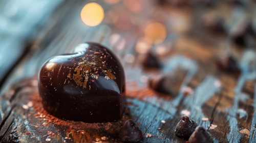 chocolate heart on wooden table, gradient background --ar 16:9 --v 6.0 --s 250
