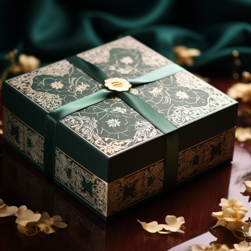 Dark green gilded gift box with a Chinese New Year theme and a prominent milk drop pattern