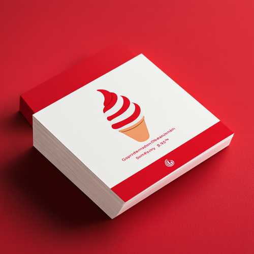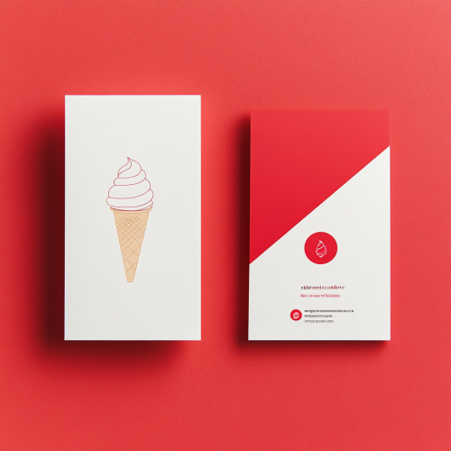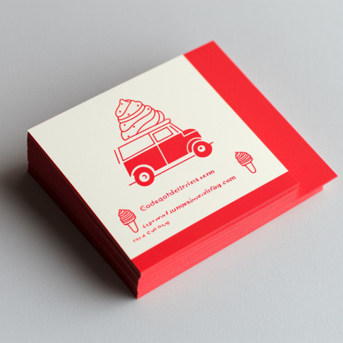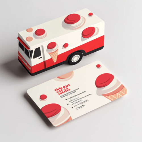 Design a minimalist and professional business card for an ice cream food truck, sized 9cm x 5.4cm, with a red and white color scheme. For the front (recto), place the business name and logo in the center with clean, elegant typography. Add a subtle yet creative element: incorporate small, round scoops of gelato (not soft-serve) around the edges or as part of the design, keeping the overall look minimal. Include an outline or a small, stylized illustration of the food truck at the bottom or corner of the card to make it unique. For the back (verso), use a white background with red accents. Add the key information (phone number, website, social media) in a clear, professional layout, and subtly integrate an illustration of the food truck along with small ice cream visuals to maintain cohesion. The design should be modern, eye-catching, and distinct, while still maintaining a clean, minimalist feel