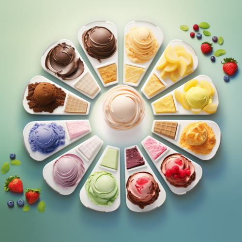 Design a product board for ice creams divided into different categories 5 categories. Each category within an oval. The ellipses fit into each other. The ratio of the board 2 to 3. Digital illustration