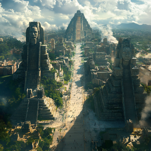 Picture, if you will, a vast city of our modern age, but with its heart rooted deep in the ancient soil of Olmec genius. Great glass towers rise high, shimmering in the sunlight, but beside them stand mighty monuments, carved of stone, straight out of the days when men first thought to chip their histories into rock. In the center of bustling plazas, you’ll find colossal basalt heads, solemn sentinels from San Lorenzo’s glory days, watching over the hum of modern life. Broad avenues stretch out in a careful design, their paths laid long ago by hands that shaped the first cities, with stepped pyramids now soaring into the sky--though these are made of steel and stone, polished and adorned with carvings that whisper of the past. In this city, the old and the new shake hands, and they do it well. Green parks, where nature reclaims her space, meet the clean, sharp lines of progress. It’s all here--natural stone, modern steel, ancient wisdom, and futuristic dreams--all woven together so neatly, you’d think the Olmecs had a hand in the blueprint. The Nikon captures it all, as clear and real as the nose on your face--each detail crisp, each color vibrant, with the light falling just so, showing the world how the past and the future, though separated by centuries, can walk together just fine. --v 6.1