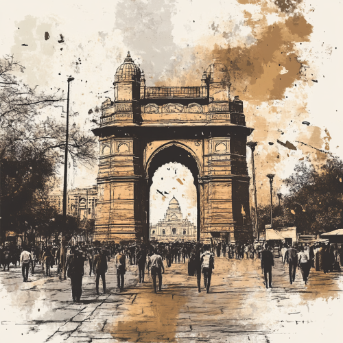 create a hand sketched poster for delhi in portrait aspect ratio, showcasing iconic monuments, street food, energetic people, it should combine images into a dynamic image to create a cohesive scene merging old with the new and capturing the spirit of delhi