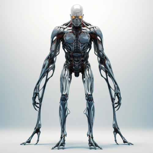 full body, humanoid robot, seen from front, skeletal under structure, transparent, jelly, organic, muscles, simple minimalist, advanced technology, veins