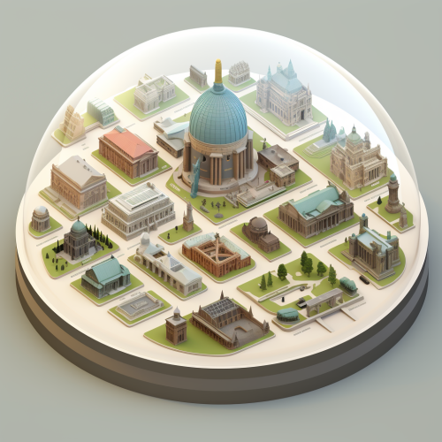 Iconic monuments in transparent domes on grid