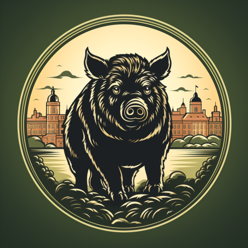 Design a minimalistic logo for a boar-spotting city app. The logo should feature a sleek, stylized silhouette of a boar in a simple, monochromatic color scheme, preferably using shades of green, gray, or black. The boar should be depicted in a subtle, elegant manner, capturing its essence without excessive detail. Consider incorporating cityscape elements, like buildings or streets, within the boar's silhouette, indicating the urban context. The logo should evoke a sense of modernity and ease of use, reflecting the app's purpose of identifying boars in the city environment. Focus on clean lines, balanced proportions, and a timeless design that can be easily recognizable and scalable for various applications. --s 750