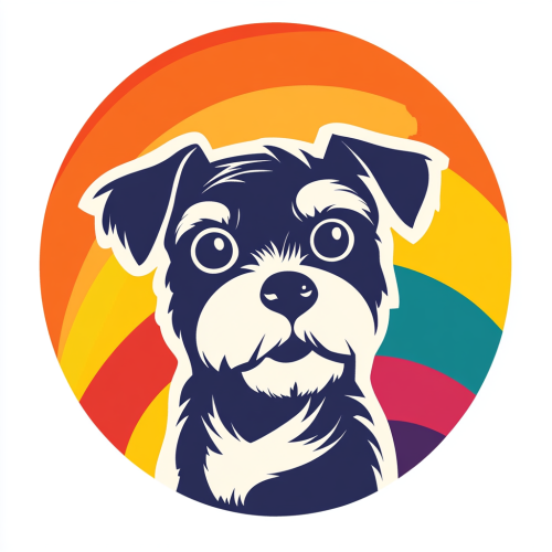 Develop a logo with an adorable puppy being groomed, designed in a graphic and iconographic style. The logo should feature a circular rainbow behind the puppy and have a white background. The overall look should be clean, colorful, and simple, making it suitable for a pet grooming business.