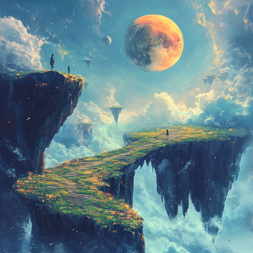 Design an album cover featuring a dreamlike, surreal landscape that stretches infinitely, with whimsical or fantastical elements like floating islands or endless fields. Use imaginative colors and flowing designs to represent the concept of boundless, limitless days.