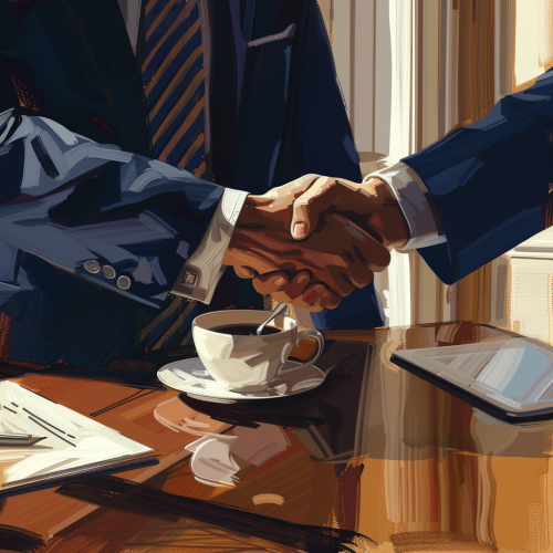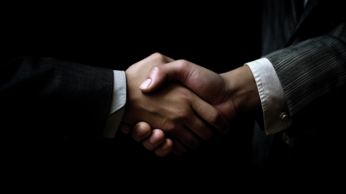 Hand shaking business men in an office.Realistic image.